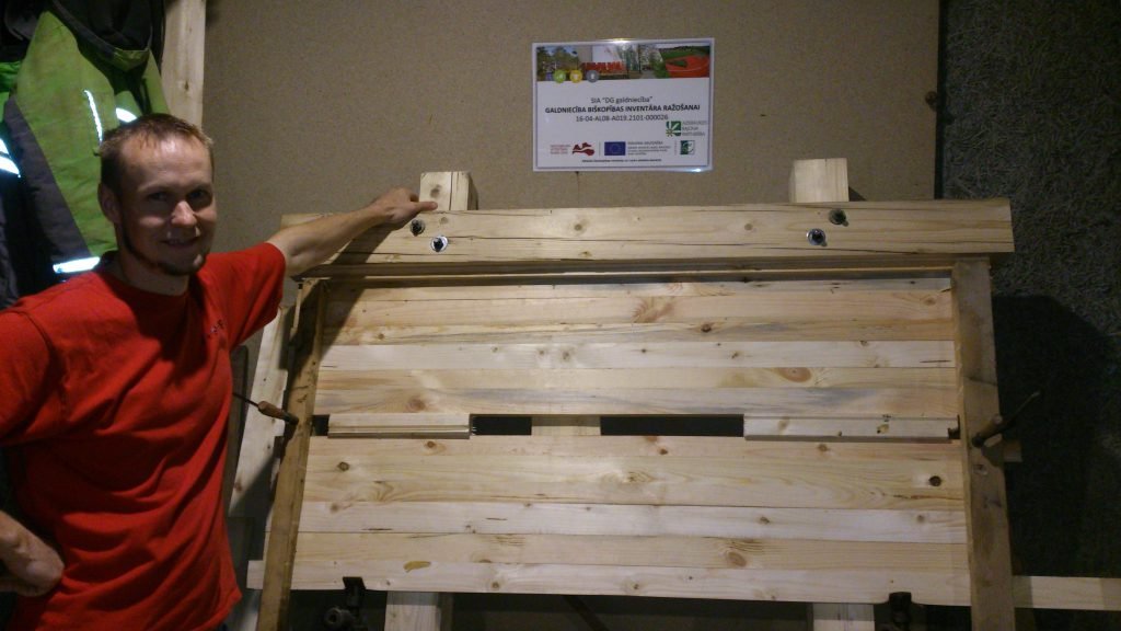 Daudzesē iekārtotajā darbnīcā “DG galdniecība” tagad top bišu stropi un to detaļas gan sev, gan citiem biteniekiem. Lai taptu funkcionālas un labas lietas, palīdz sava pieredze. “Strādājot biškopībā, zinu, ko un kā vajag, līdz ar to aprīkojumu darinu ar saviem praktiskiem uzlabojumiem,” stāsta Didzis. Viņš rāda tur tapušos šķirdēļus, ko liek stropos — tie uzlaboti, lai neliecas, nelūst.